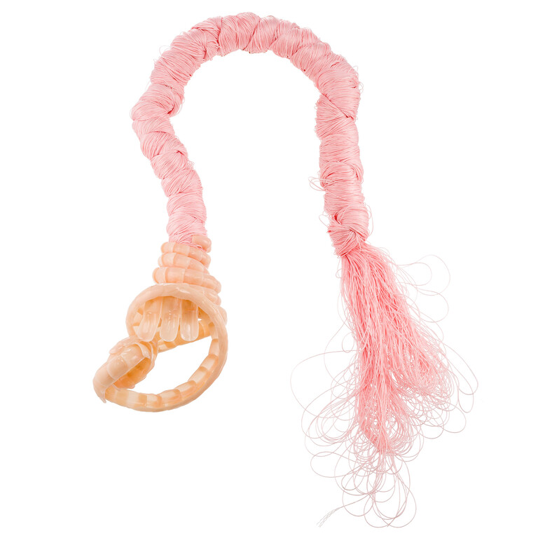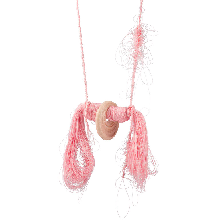 Necklace, hear me, 2025 Synthetic nails, polyester thread, resin 35cmx23cmx8cm 250gr Knotting , enamel