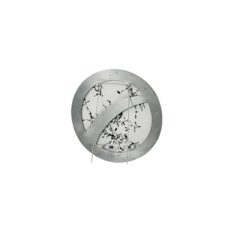 Inspired by the moon maps of J. Hevelius, I created a brooch by designing my own topographic map of the Moon, embroidered with thread on canvas in the circular shape of the full moon.